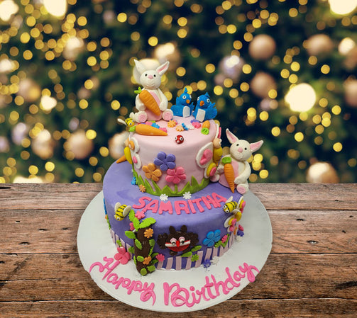Birthday Cake for a Little One with Elegant Fondant work. Also available in an Eggless variant.